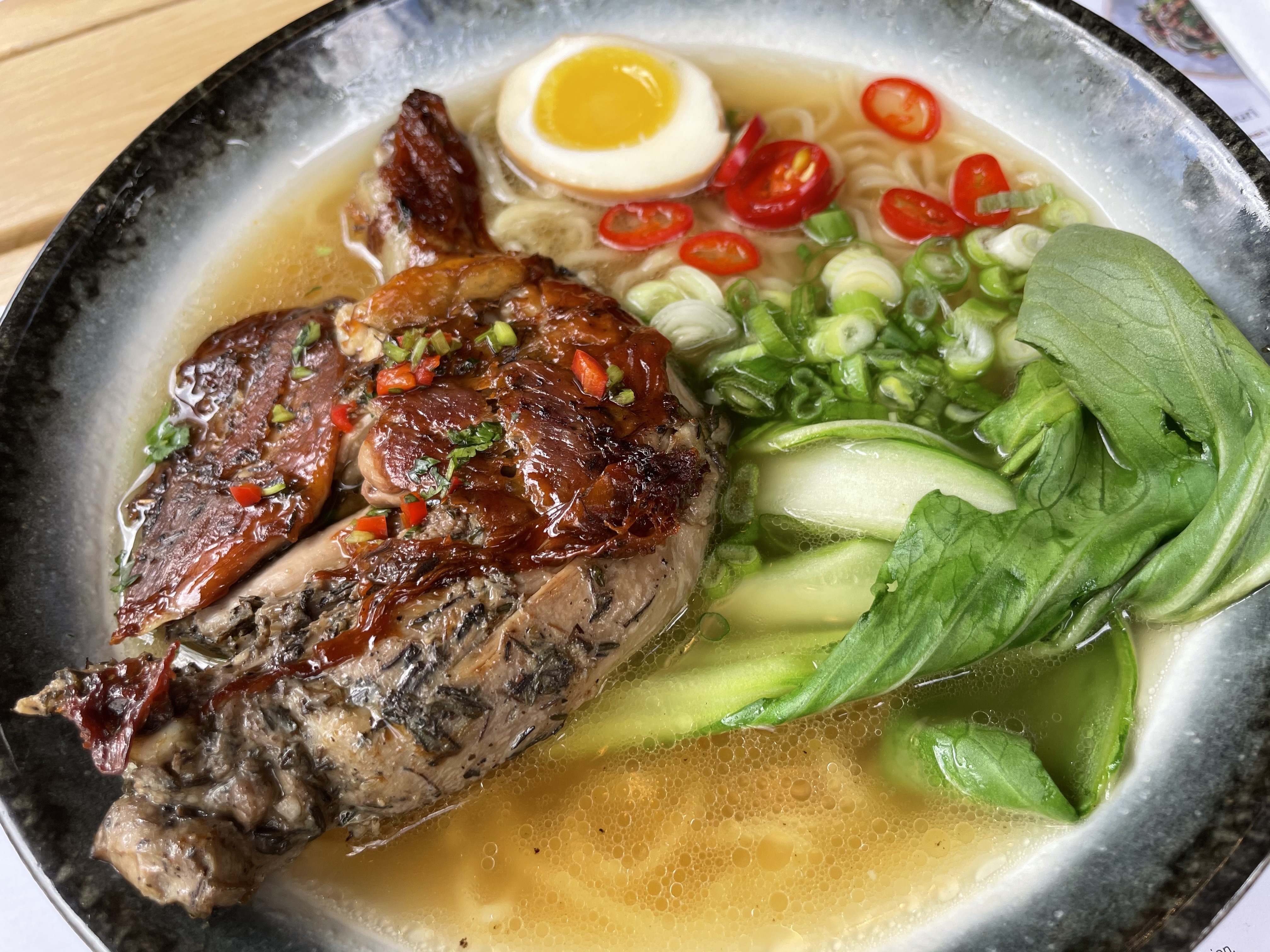 뭔가 또 랍스터같은거 먹고 싶었는데 야외에 사람들이 넘 가까이 다닥다닥 있어서 가기 꺼려졌다. 그래서 자리가 좀 편해보였던, 그리고 우리가 익숙해서 좋아하는 Asian cuisine 으로 갔다. 스파이시투나랑 오리고기라멘 그리고 돼지고기바오를 시켰는데 셋 다 너무 맛있었다! 우리가 좋아하는 음식을 먹어서 아주 만족스러운 식사였다.